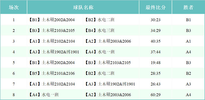 半决赛将在5月10日18:00于西操东侧球场进行最终谁将争夺本届联赛的冠军呢?让我们拭目以待!(如因天气原因变更,时间地点另行通知)比赛分组:水电一班 VS 水电二班(A4:B2)土木硕2002&2004 VS 土木硕1902&博1901(B1:A3)。第二届“毕业杯”篮球联赛半决赛邀你共赏又一场视觉盛宴!