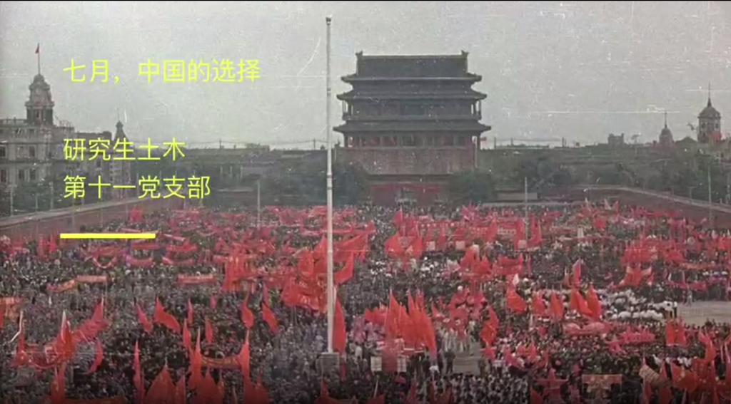 中国选择过一月的金田起义,金田的义旗却倒折于内部派系的兵刃;选择过六月的戊戌变法,维新运动却被屠刀宰杀;中国选择过十月的辛亥革命,革命的果实却被窃国大盗窃取……中国,在神州陆沉中选择,在民族危亡中选择,中国上下求索,历经磨难,终于,中国选择了七月!