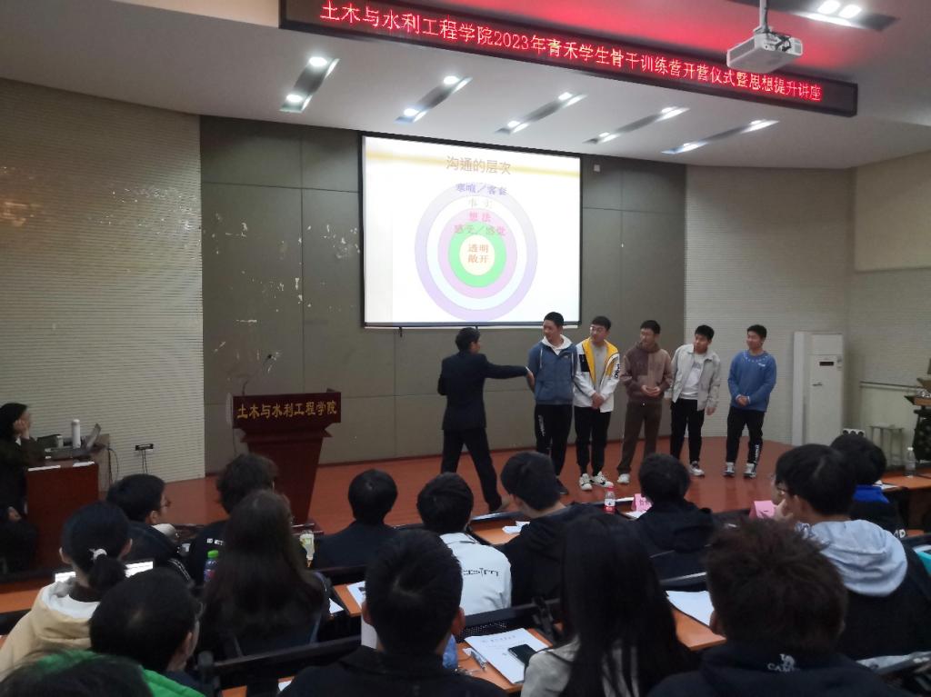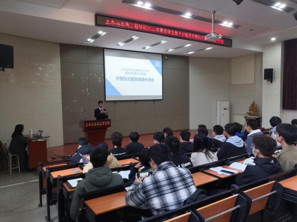 2023年3月23号下午三点,yl23455永利青禾员工训练营开营仪式暨思想提升讲座在南二楼报告厅顺利举行,yl23455永利教授魏小胜、yl23455永利团委副书记潘噔,yl23455永利员工会三位主席团成员以及40余位干训队长与队员参加了本次开营仪式。