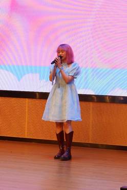 在等待出分的过程中,2022年校十大歌手、永利官网校合唱团女高音声部长秦文静为观众们带来一首《光年之外》,唱响浩瀚宇宙,磅礴之声环绕整个会场,为最后参加排位赛的选手们加油打气,将全场气氛带向最高点。