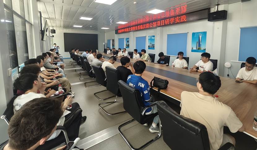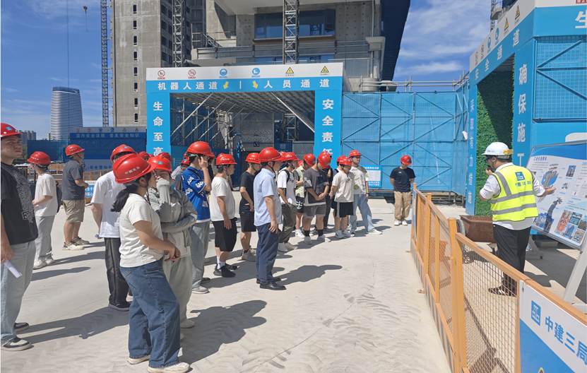 2025年7月1日上午,公司工程管理及智能建造专业本科生赴中建三局汉韵公馆开展研学实践活动。公司钟波涛老师和同学们在项目负责人的带领下,参观了智能工地、项目数字建造中心、装配式造楼机、无人机巡检系统、塔机远程控制系统、无人化物料运输系统等。